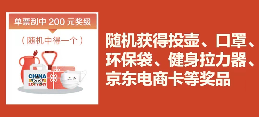 活動(dòng)期間,凡是購(gòu)買(mǎi)“寅虎”、“錦虎賀歲”、“2022”、“虎虎生威”4款即開(kāi)票中任意1款,單票刮中1000元獎(jiǎng)級(jí),在完成獎(jiǎng)金兌付后,通過(guò)“中國(guó)體育彩票”APP或微信小程序,掃描保安區(qū)二維碼登錄活動(dòng)頁(yè)面,即可獲得健身滑板。單票刮中200元獎(jiǎng)級(jí),在完成獎(jiǎng)金兌付后,通過(guò)“中國(guó)體育彩票”APP或微信小程序,掃描保安區(qū)二維碼登錄活動(dòng)頁(yè)面,即可隨機(jī)領(lǐng)取投壺、口罩、環(huán)保袋、健身拉力器、電商卡等獎(jiǎng)品,獎(jiǎng)品數(shù)量有限,領(lǐng)完即止。