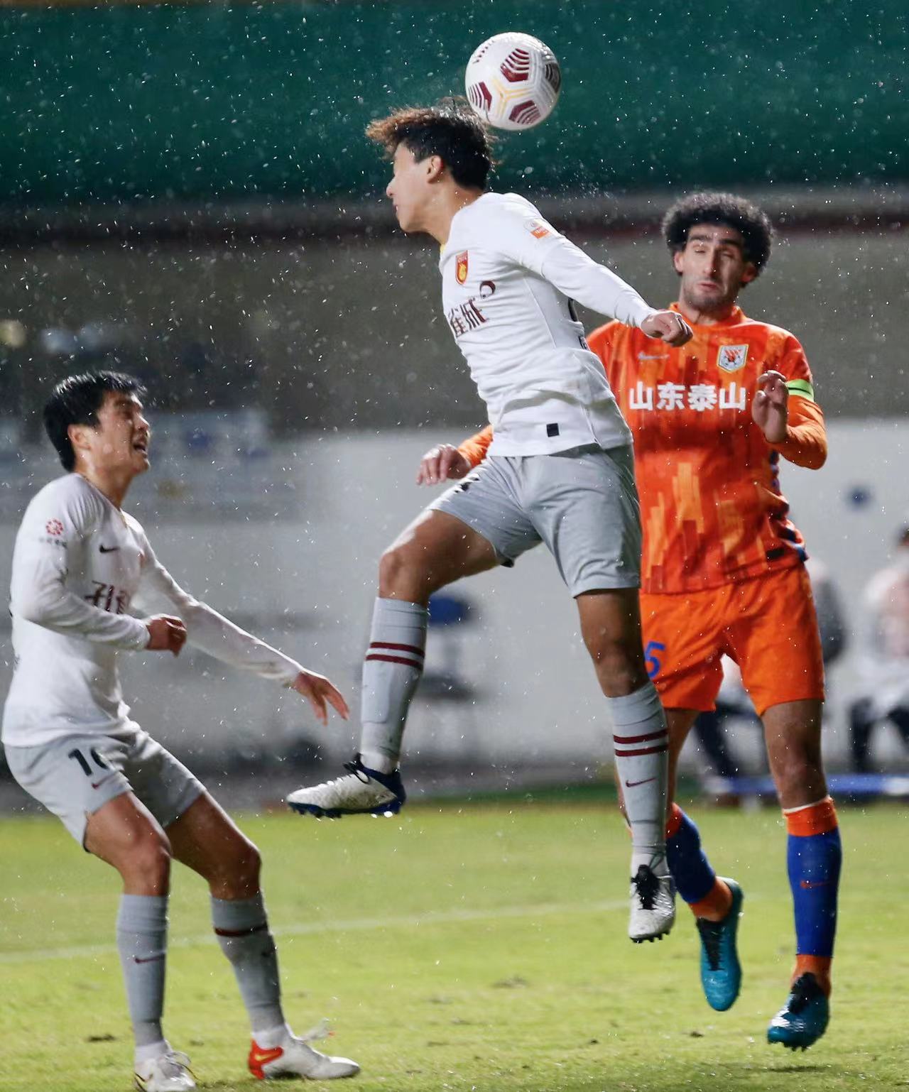 在廣州今晚的冷雨中,中超第19輪爭冠組在越秀山體育場上演了關鍵一戰(zhàn),山東泰山與河北隊進行激戰(zhàn)。