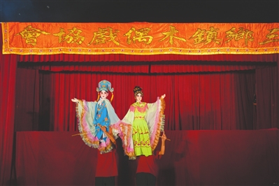 當(dāng)晚,為木偶戲做現(xiàn)場伴奏和演唱的是三鄉(xiāng)鎮(zhèn)橋頭村樂雅曲藝社。該曲藝社在新中國成立前就已經(jīng)很活躍,與同期著名的小雅山房曲藝社相輝映。1949年后,曲藝社解散,直至1994年重建,現(xiàn)有社員近20人,多數(shù)為有十多年演繹技藝的老藝人。