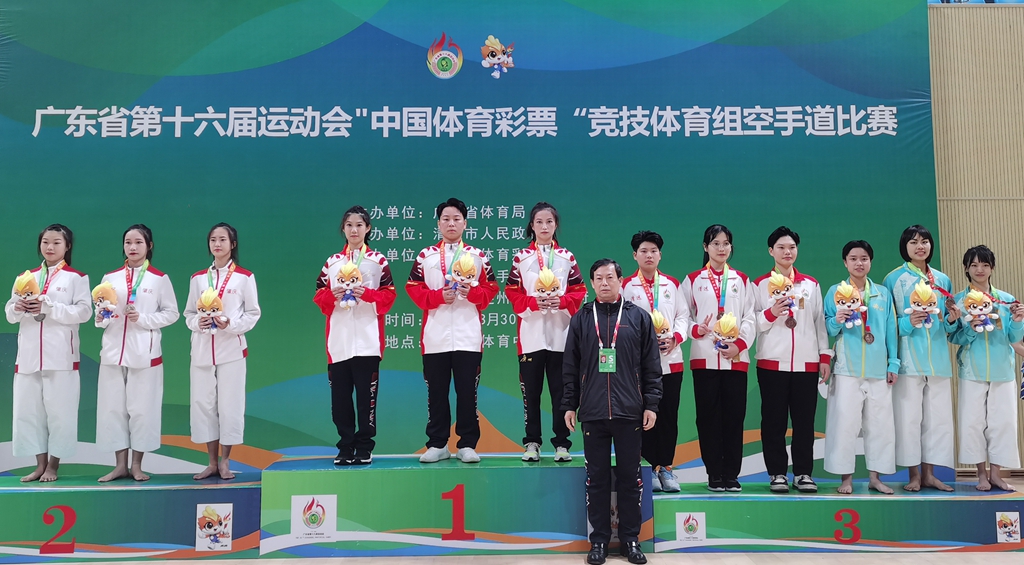 日前,廣東省第十六屆運動會空手道項目比賽在清遠連州市舉行,廣州體育代表團空手道隊共派出19名運動員參加20個小項的比賽,共獲得2金2銀5銅,138.5分,金牌數(shù)并列第4、獎牌數(shù)躋身三甲,并獲體育道德風尚獎,實現(xiàn)運動成績與精神文明雙豐收。