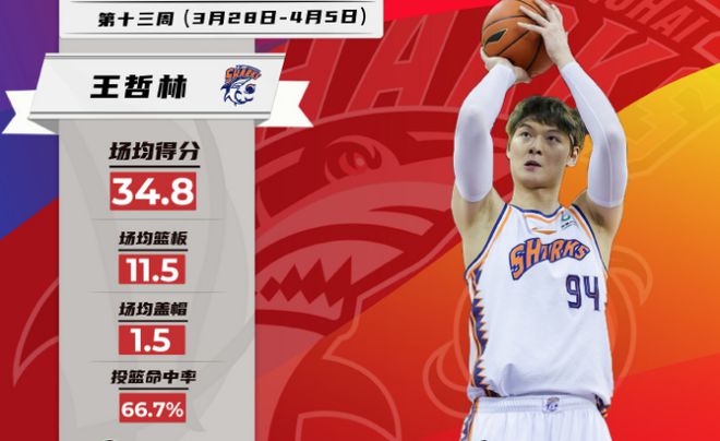 上海內(nèi)線核心王哲林在第13周出戰(zhàn)4場,率隊取得3勝1負(fù)的戰(zhàn)績,他場均出場36分鐘,貢獻(xiàn)出34.8分、11.5籃板、1.5蓋帽的優(yōu)質(zhì)數(shù)據(jù),投籃命中率高達(dá)66.7%,并且在常規(guī)賽收官戰(zhàn)面對北控,拿下創(chuàng)CBA本土球員歷史第二高紀(jì)錄的61分。