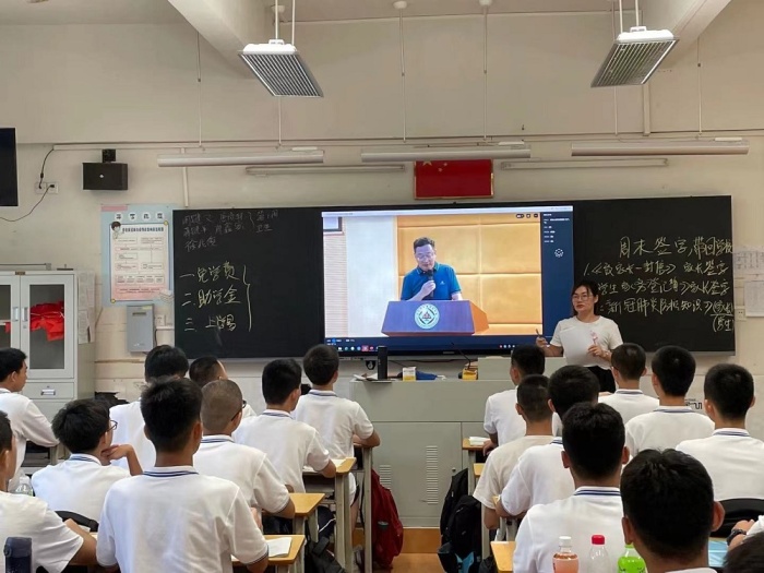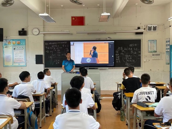他以中山籍奧運(yùn)健兒蘇炳添在東京奧運(yùn)賽場(chǎng)上頑強(qiáng)拼搏為國(guó)爭(zhēng)光談起,激發(fā)青年學(xué)生對(duì)民族的自豪感和榮譽(yù)感。繼而他拋磚引玉地提出問題:“同學(xué)們對(duì)責(zé)任與擔(dān)當(dāng)?shù)目捶ㄊ鞘裁??”“作為新時(shí)代的青年,你們的時(shí)代擔(dān)當(dāng)是什么?”事例催人奮進(jìn),問題發(fā)人深省。