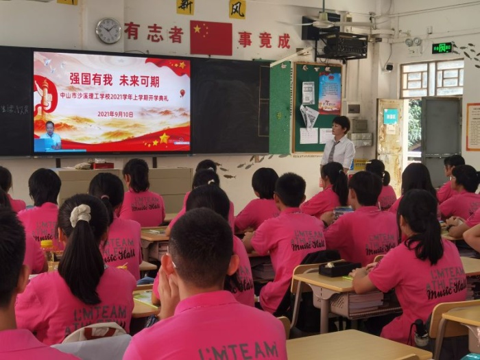 9月10日,中山市沙溪理工學(xué)校舉行線上開(kāi)學(xué)典禮,全體在校師生近4000人在課室、實(shí)訓(xùn)室、綜藝廳等場(chǎng)室通過(guò)線上直播的方式參加。