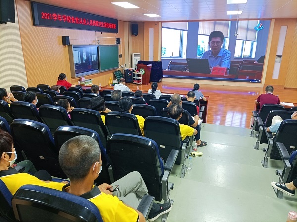 為了預防和及時處置食源性疾病等突發(fā)事件的發(fā)生,保護廣大師生的生命安全,做好中小學生營養(yǎng)配餐指導工作,改善學生營養(yǎng),增強學生體質,9月9日下午,中山市舉辦2021學年學校食堂從業(yè)人員崗位衛(wèi)生強化培訓班。古鎮(zhèn)鎮(zhèn)教育與體育事務中心衛(wèi)生專干李維鋒、各中小學分管食堂的行政、食堂管理人員和從業(yè)人員和學生集體配送餐企業(yè)全體員工在曹二小學報告廳收看了培訓班直播視頻。