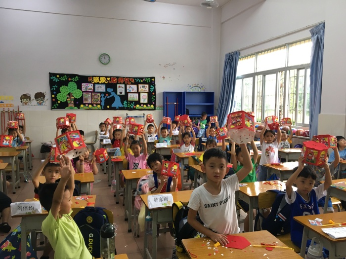 隨后,有的班級分享月餅,品嘗著中秋節(jié)獨有的甜蜜與幸福;有的班級動手制作小燈籠,整個班會課上其樂融融,充滿了濃濃的節(jié)日氛圍。