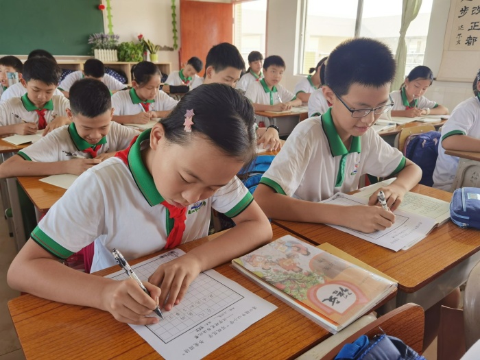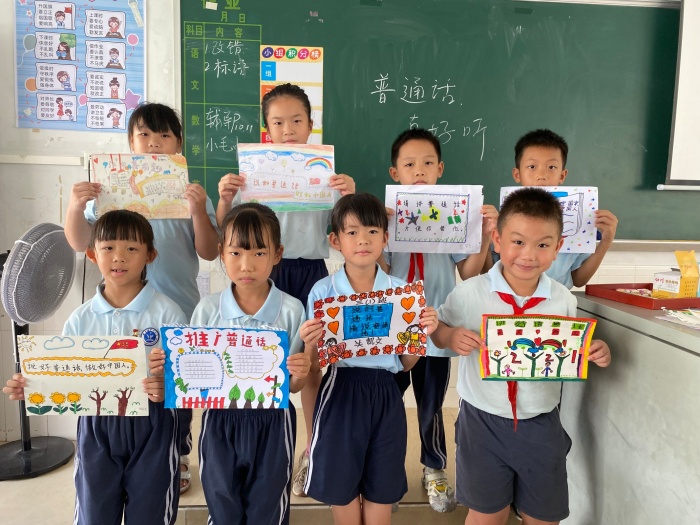 各年級也舉辦了特色鮮明的推廣普通話活動。一年級的小同學化身小老師,用標準的普通話向長輩們誦讀課文或講述生動有趣的故事,讓推普活動走進家家戶戶。二年級的紅領巾宣講員們同學們字正腔圓、聲情并茂地講述了英雄先烈們的英勇感人事跡,傳承紅色基因。三年級的同學們?yōu)橥破栈顒釉O計了一幅幅版式精美的推廣普通話宣傳標語。四年級老師和同學們精心挑選誦讀內(nèi)容進行誦讀經(jīng)典詩文比賽。千年流傳的文化古韻,伴著稚嫩的聲音,為校園增添了濃厚的文化韻味。五年級開展了繪制“講普通話,寫規(guī)范字”手抄報比賽活動。同學們通過精美的手抄報,用實際行動響應祖國“推普”號召,抒發(fā)自己的愛國情!漢字硬筆書法比賽在六年級中開展。同學們筆尖流轉(zhuǎn)出一行行優(yōu)美的漢字,在字里行間發(fā)現(xiàn)中華文字的魅力,發(fā)現(xiàn)中華文化的深厚內(nèi)涵。