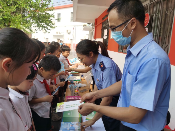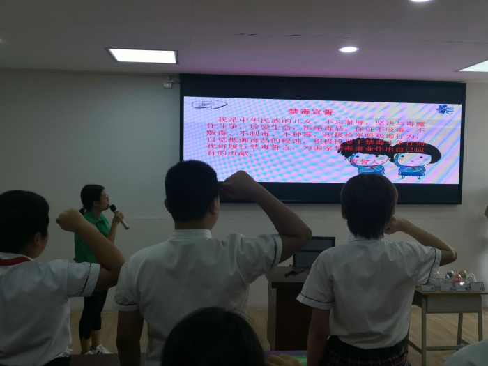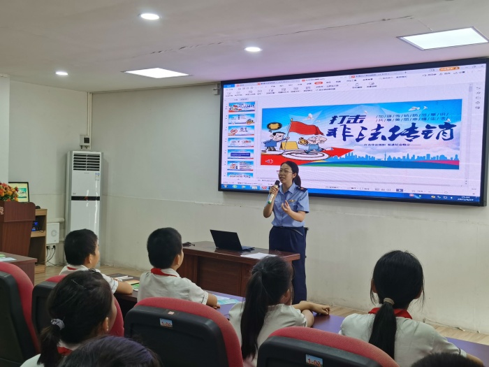 活動中,鎮(zhèn)統(tǒng)戰(zhàn)辦向全校250多名少數(shù)民族學生送上了學習用品,向他們送上國慶節(jié)日祝福,寄語他們在黃圃這塊有愛的土地上快樂茁壯成長,為實現(xiàn)強國夢貢獻力量!現(xiàn)場的宣傳攤位擺放了民族、禁毒、消費維權(quán)及反傳銷的傳單,仿真毒品及民族宣傳的海報,同學們認真聽取工作人員的講解,初步掌握了相關(guān)的基礎(chǔ)知識。為加強教育效果,鎮(zhèn)司法所邀請了瑋德律師事務所的成世鴻律師開展民族宗教政策宣講,成律師以案說法,詳細解讀了有關(guān)民族政策法規(guī)及其實踐等知識,讓少數(shù)民族學生增強民族意識,充分認識自己應享受的權(quán)利和義務。由黃圃市場監(jiān)管分局的工作人員進行反傳銷、消費維權(quán)知識有獎問答游戲,現(xiàn)場氣氛活躍,同學們互動中學習了傳銷的概念、特點與危害及其預防方法,在日常消費中維權(quán)的途徑等,引導同學們要當好“宣傳員”,回家向家長宣傳好“反傳銷”及消費維權(quán)的知識,切實維護好自身權(quán)益。為防止新型毒品的濫用,鎮(zhèn)禁毒辦社工通過課件,圖文并茂,向六年級的全體學生深入淺出地普及了“上頭電子煙”、咔哇潮飲、神仙水等新型毒品特點及危害,毒販誘騙青少年吸毒的常用套路和拒毒“防身術(shù)”。同學們還進行禁毒宣誓,成為一名禁毒小衛(wèi)士,用實際行動投入禁毒斗爭行列。鎮(zhèn)防范辦工作人員通過發(fā)放反邪宣傳資料、參觀反邪宣傳展板等形式,結(jié)合真實案例,從邪教的種類、邪教的特征、如何防范和抵御邪教三方面向廣大師生重點講解什么是邪教、邪教與宗教的區(qū)別、邪教的危害以及相關(guān)法律法規(guī)知識,教導他們要從小樹立“崇尚科學 反對邪教”的觀念。