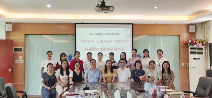 在果實(shí)累累的金秋九月,2021年9月24日上午,港口鎮(zhèn)中心小學(xué)開展了鎮(zhèn)級(jí)語文課題《國學(xué)經(jīng)典“主題式教學(xué)”實(shí)踐研究》結(jié)題活動(dòng)暨吟誦教學(xué)研討活動(dòng)。參加活動(dòng)的專家組有港口鎮(zhèn)教育和體育事務(wù)中心張育文副主任、小學(xué)教研專干蘇彩南老師,民主小學(xué)李菲菲主任,港口鎮(zhèn)中心小學(xué)李小健校長、梁文玲副校長等行政,課題組全體成員以及港口鎮(zhèn)各兄弟學(xué)校的語文老師代表參加了活動(dòng)。