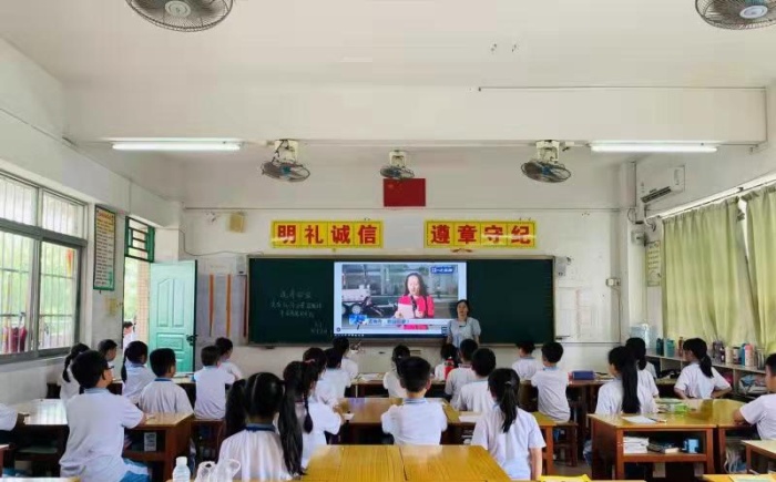 主題班會(huì)課上,老師們結(jié)合視頻為孩子們講述孟晚舟事件始末;展示央視實(shí)時(shí)跟蹤報(bào)道,人民在網(wǎng)上激情留言,深圳機(jī)場(chǎng)現(xiàn)場(chǎng)激動(dòng)人心的場(chǎng)面;傾聽(tīng)了孟晚舟發(fā)表感言?!坝形逍羌t旗的地方,就有信念的燈塔。如果信念有顏色,那一定是中國(guó)紅!”深深地印入孩子們的心中。