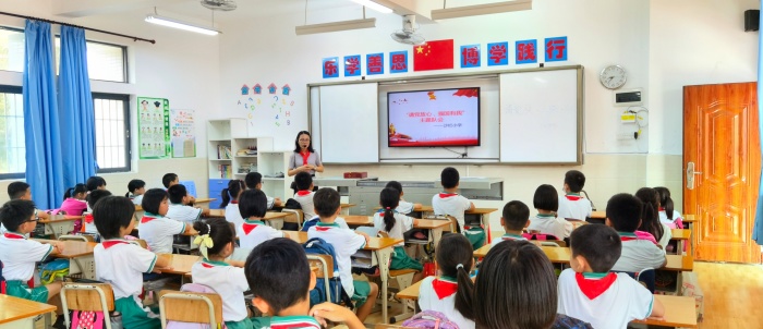 隊(duì)會(huì)課上,各中隊(duì)輔導(dǎo)員帶領(lǐng)隊(duì)員重溫“請(qǐng)黨放心 強(qiáng)國(guó)有我”的獻(xiàn)詞,借此契機(jī),利用“學(xué)習(xí)強(qiáng)國(guó)”平臺(tái)上資源,播放典型黨員楷模的故事,引導(dǎo)學(xué)生學(xué)習(xí)黨發(fā)展、斗爭(zhēng)、壯大過(guò)程中的光輝歷史和革命英雄事跡,學(xué)習(xí)他們無(wú)私奉獻(xiàn)的精神。結(jié)合即將到來(lái)的國(guó)慶節(jié),中隊(duì)輔導(dǎo)員也帶領(lǐng)隊(duì)員逐一了解國(guó)名的由來(lái)、建國(guó)時(shí)間、國(guó)旗、國(guó)徽含義等有關(guān)知識(shí),認(rèn)識(shí)到祖國(guó)的風(fēng)雨兼程,才有今天的繁榮昌盛,讓隊(duì)員們明白了作為新時(shí)代的少先隊(duì)員,要牢記使命,努力學(xué)習(xí),用實(shí)際行動(dòng)為紅領(lǐng)巾增光添彩。經(jīng)過(guò)本節(jié)隊(duì)課,隊(duì)員們更將“請(qǐng)黨放心,強(qiáng)國(guó)有我”這一誓言內(nèi)化于心,外化于行。