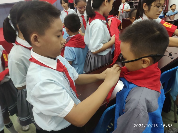 2021年10月15日下午,在下南小學(xué)的報(bào)告廳舉行了隆重的一年級入隊(duì)儀式。學(xué)生們在老師的帶領(lǐng)下,早早地來到了會(huì)場,等他們?nèi)松械谝淮我饬x重大的、激動(dòng)人心的時(shí)刻——加入光榮的少先隊(duì)組織。儀式中,歌聲嘹亮,隊(duì)旗、紅領(lǐng)巾格外鮮艷,個(gè)個(gè)小臉上洋溢著開心燦爛的笑容。伴隨著嘹亮的《少年先鋒隊(duì)隊(duì)歌》,由老隊(duì)員為新隊(duì)員佩戴紅領(lǐng)巾,互相莊重地敬了隊(duì)禮。