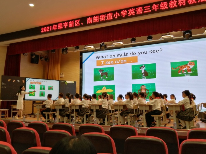 為了提高任教三年級(jí)英語(yǔ)的老師們對(duì)教材的解讀以及教學(xué)能力,2021年10月15日上午,在翠亨新區(qū)中山紀(jì)念小學(xué)舉行了2021年翠亨新區(qū)、南朗街道小學(xué)英語(yǔ)三年級(jí)教材教法研討活動(dòng)。