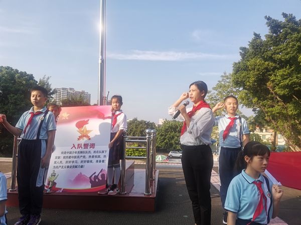 10月11日早上,沙溪鎮(zhèn)中心小學(xué)一如既往地進(jìn)行莊嚴(yán)的升旗禮活動(dòng),但與平時(shí)不一樣的是,為宣傳貫徹習(xí)近平總書記“七一”重要講話精神,貫徹落實(shí)習(xí)近平總書記關(guān)于少年兒童和少先隊(duì)工作的重要論述,認(rèn)真落實(shí)《中共中央關(guān)于全面加強(qiáng)新時(shí)代少年先對(duì)工作的意見》和少先隊(duì)第八次全國代表大會(huì)提出的“著力邁向社會(huì)、進(jìn)軍線上,加強(qiáng)社會(huì)化工作體系建設(shè)”的工作部署,同時(shí)為了迎接少先隊(duì)中山市第八次代表大會(huì)的到來,這里正在舉行一場(chǎng)特別的少先隊(duì)微儀式 ,主題為“請(qǐng)黨放心,強(qiáng)國有我”。