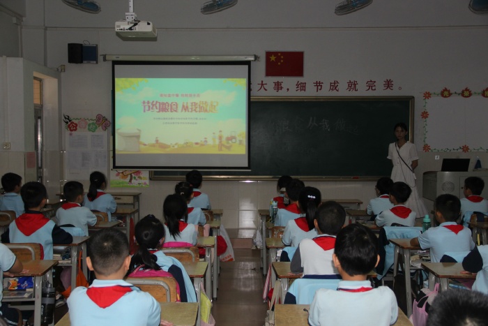 在各班主題隊會上,老師展示了貧困地區(qū)糧食稀缺的現(xiàn)狀以及社會上一些人浪費糧食的現(xiàn)象,兩種對比,讓隊員們從內(nèi)心體會到糧食的來之不易以及“誰知盤中餐,粒粒皆辛苦”的深刻內(nèi)涵,并自覺承諾從現(xiàn)在做起,從自身做起,節(jié)約每一粒糧食,抵制和反對浪費糧食的行為,養(yǎng)成愛糧節(jié)糧的好習(xí)慣。