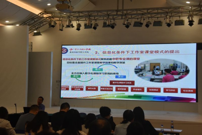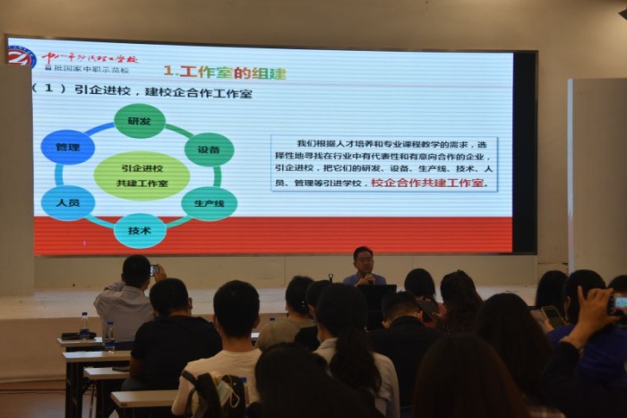 交流會(huì)上,馮子川以“中職工作室課堂模式的教學(xué)改革與實(shí)踐”“信息化條件下的工作室課堂模式”等主題作講座,重點(diǎn)介紹學(xué)校引企進(jìn)校,建設(shè)校企合作、產(chǎn)教融合工作室,實(shí)行項(xiàng)目教學(xué)、生產(chǎn)性實(shí)訓(xùn)、跟崗和定崗實(shí)習(xí),讓學(xué)生在真實(shí)的企業(yè)環(huán)境里學(xué)習(xí)、實(shí)訓(xùn),使得一大批專業(yè)教師在工作室迅速成長(zhǎng),成為“既是學(xué)校教師,又是企業(yè)技師”的真正雙師型教師,取得了豐富的產(chǎn)學(xué)研成果。近年來(lái),學(xué)校借助信息化手段,在課前、課中、課后等教學(xué)環(huán)節(jié)中利用數(shù)字化課程學(xué)習(xí)系統(tǒng),通過(guò)在線學(xué)習(xí)、在線交流和遠(yuǎn)程評(píng)價(jià)等方式,幫助學(xué)生逐步達(dá)到技能形成、能力培養(yǎng)、知識(shí)創(chuàng)新的學(xué)習(xí)階段。