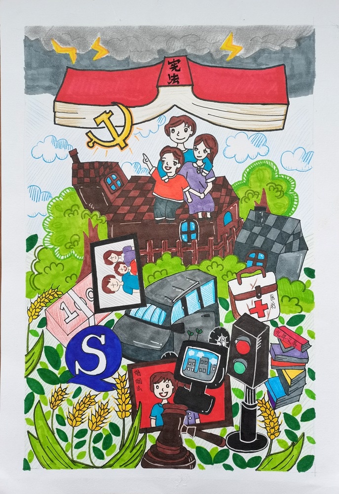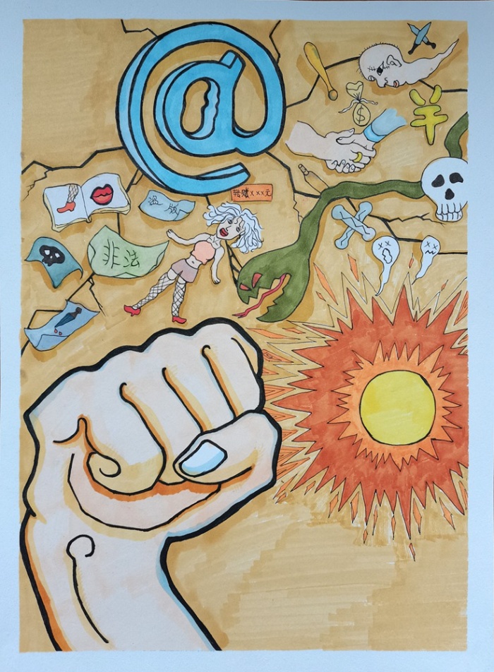 中共中央、國(guó)務(wù)院轉(zhuǎn)發(fā)的“八五”普法規(guī)劃和《關(guān)于加強(qiáng)社會(huì)主義法治文化建設(shè)的意見(jiàn)》要求,加強(qiáng)青少年法治教育,全面落實(shí)《青少年法治教育大綱》,教育引導(dǎo)青少年從小養(yǎng)成尊法守法習(xí)慣。東升高級(jí)中學(xué)為大力宣傳“掃黃打非”知識(shí),用好的藝術(shù)作品教育人、鼓舞人及感染人的功能,助推“掃黃打非”工作深入開(kāi)展,2021年10月,學(xué)校德育處聯(lián)合美術(shù)科組舉辦“掃黃打非”法制繪畫(huà)大賽。