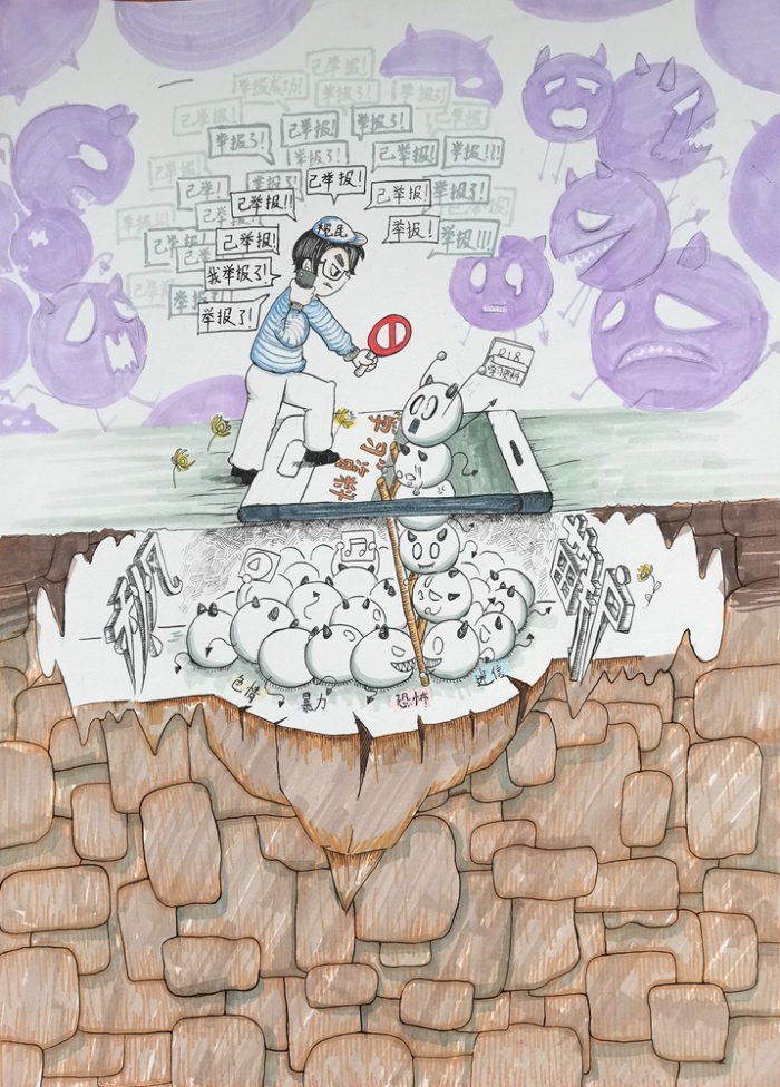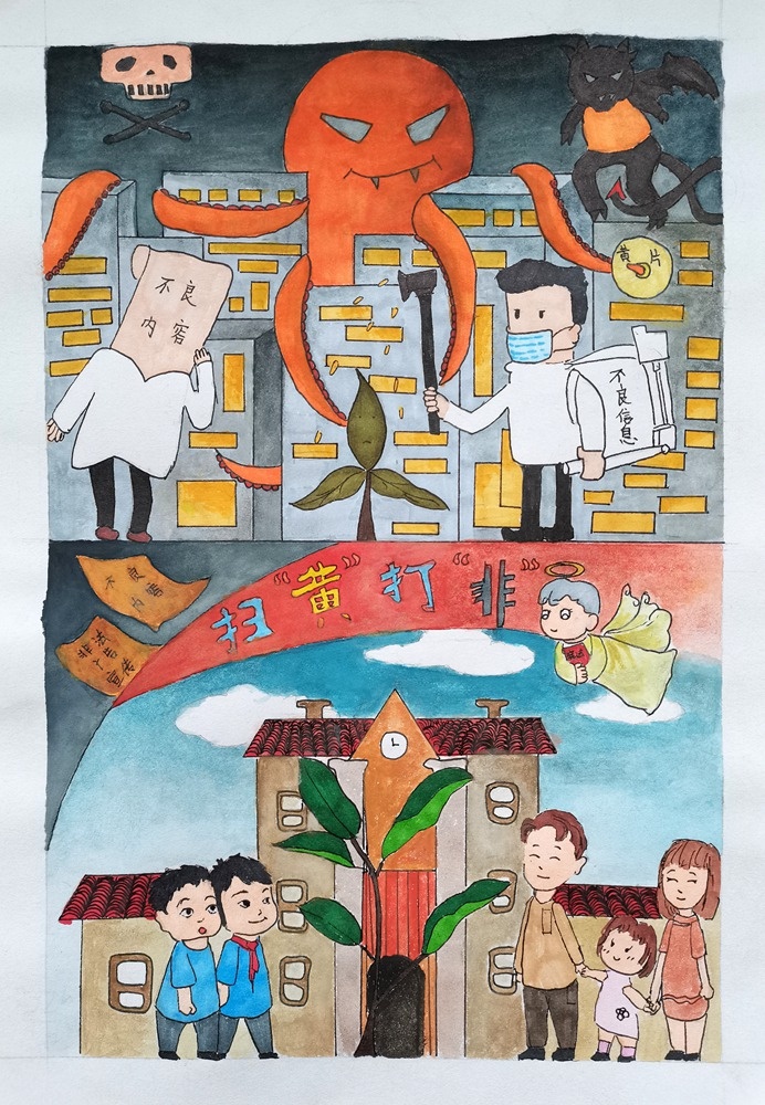 同學(xué)們接到比賽通知后,積極參與,在美術(shù)老師的指導(dǎo)下,認(rèn)真創(chuàng)作,幾天時(shí)間就上交作品100多幅。經(jīng)過(guò)美術(shù)科組專(zhuān)業(yè)老師的認(rèn)真評(píng)選,評(píng)出一、二、三等獎(jiǎng)60多幅,學(xué)校將把優(yōu)秀作品上交參加2021小欖鎮(zhèn)的“掃黃打非”漫畫(huà)、連環(huán)畫(huà)評(píng)選活動(dòng)。