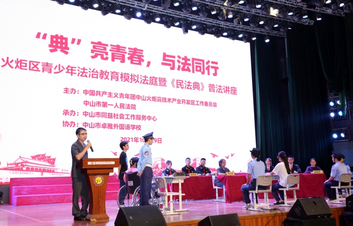 本次活動由中國共產(chǎn)主義共青團中山火炬高技術(shù)產(chǎn)業(yè)開發(fā)區(qū)工作委員會、中山市第一人民法院主辦,中山市同益社會工作服務(wù)中心承辦,中山市卓雅外國語學(xué)校協(xié)辦。中山市火炬開發(fā)區(qū)法庭副庭長鄧文輝法官、卓雅外校副校長李文等參加活動。