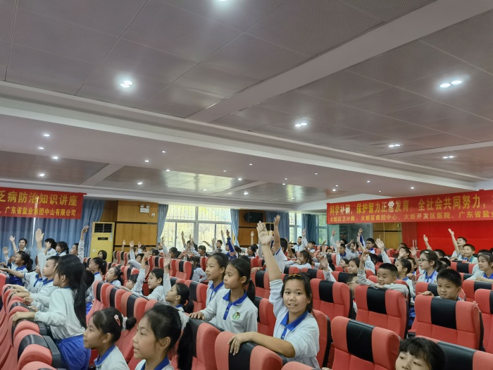 講座中,火炬開(kāi)發(fā)區(qū)醫(yī)院兒童保健科鄧成主任醫(yī)師用風(fēng)趣幽默的語(yǔ)言和生動(dòng)形象的圖片展示,講解了碘的作用、缺碘的危害、怎樣科學(xué)補(bǔ)碘等方面的科普知識(shí),同學(xué)們知道了碘是人體不可缺少的一種營(yíng)養(yǎng)素,缺碘不僅會(huì)導(dǎo)致“大脖子病”、體格發(fā)育障礙,更為嚴(yán)重的是影響腦發(fā)育,導(dǎo)致智力損傷。鄧成主任醫(yī)師還通過(guò)有獎(jiǎng)競(jìng)猜的方式,吸引學(xué)生的興趣,將活動(dòng)推向了高潮。鹽業(yè)公司鄧奕主管更通過(guò)科學(xué)小實(shí)驗(yàn),為同學(xué)們講解了如何辨別真假食鹽。學(xué)生認(rèn)真聆聽(tīng)并積極參與實(shí)驗(yàn),現(xiàn)場(chǎng)有序,氣氛熱烈。