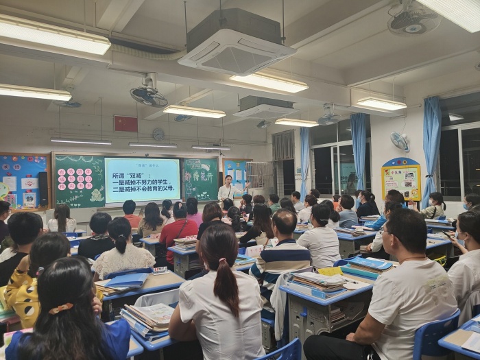 老師們又從學生的習慣養(yǎng)成方面,指導(dǎo)家長在“雙減”政策背景下,如何創(chuàng)造學生健康全面成長的有利環(huán)境。“雙減”是一個培養(yǎng)孩子自主管理能力的好時機。家長朋友們要引導(dǎo)孩子合理安排學習計劃,養(yǎng)成自主學習的良好學習習慣,注重挖掘和培養(yǎng)孩子的興趣和特長。引導(dǎo)孩子正確處理好學習、運動和娛樂間的關(guān)系,勞逸結(jié)合,保證睡眠時間和質(zhì)量,保持有規(guī)律的生活節(jié)奏,促進身心健康。會后,班主任統(tǒng)一做好課室的消毒工作,確保學生的回校安全。