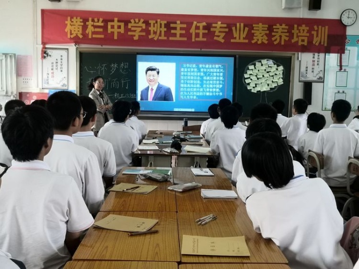 活動開始,來訪的小欖永寧中學教師們按年級分別觀摩了初一(16)班金泳燦老師的《我和班級共成長》、初二(19)班何美慧老師的《靜待花開》、初三(5)班蔣素芳老師的《理想前途教育》主題班會課。三節(jié)班會課以“三邁”行動為主線,以“體驗”教育為抓手,向觀摩老師展示了該校初一級邁好中學第一步、初二級邁好青春第一步、初三級邁好理想第一步的“三邁行動”德育體系。課堂上學生有禮、自信、大方的表現,給老師們留下了深刻的印象。