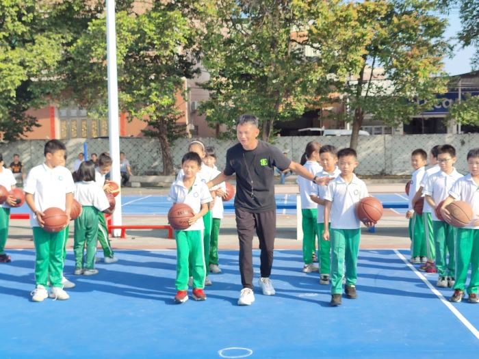 安堂小學黃昆明老師在籃球場上給龍港小學的學生們上了一節(jié)精彩的籃球訓練課。黃老師將如何運球,如何控球的方法給孩子們作了細致的講解,并通過老師的動作示范。課上,孩子們學習興致極高,很快就學會了老師所教授的運球技巧。