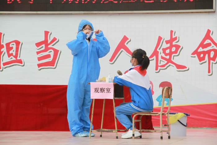 隨后,在總務(wù)處的組織下進行了防疫工作應(yīng)急演練??倓?wù)處代表李寶明主任就演練工作進行了小結(jié),并對下階段學(xué)校疫情防控工作進行了布置。