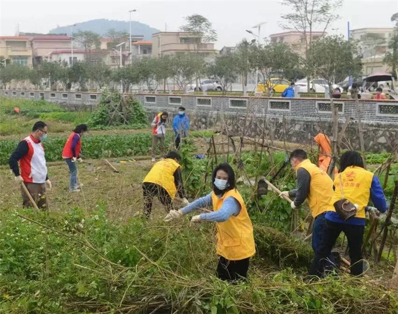 隨后,親子家庭們分成兩個(gè)組開展環(huán)境衛(wèi)生志愿服務(wù),齊心協(xié)力將親子農(nóng)場(chǎng)及周邊的雜草和垃圾進(jìn)行清理,并開墾一塊空地,種植上香菜等農(nóng)作物。