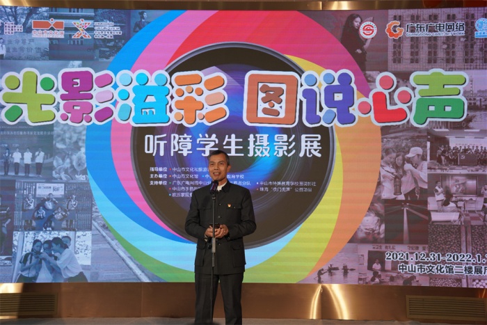 開幕式愛心融融、溫情涌動。市政協工會主席何星朗,市總工會二級調研員馮勇,市文化廣電旅游局四級調研員張文,廣東省廣播電視網絡股份有限公司中山分公司市場營銷部品牌傳播室負責人徐國超,市委宣傳部文化發(fā)展科科長王洪,市文化館館長方文,市特校黨總支書記、校長湯劍文,市文化館副館長王梓仲,市美術教研員沈文,市東區(qū)書法家協會會長吳步里,市攝影家協會副主席王國辰,歐派家居集團股份有限公司中山分公司總經理譚錦恩,珠海“快門無聲”公益項目創(chuàng)始人朱習,市文化館專職攝影師賀億強,以及市特校圖說影社的師生們均來到活動現場,真情相約本次心靈之旅。