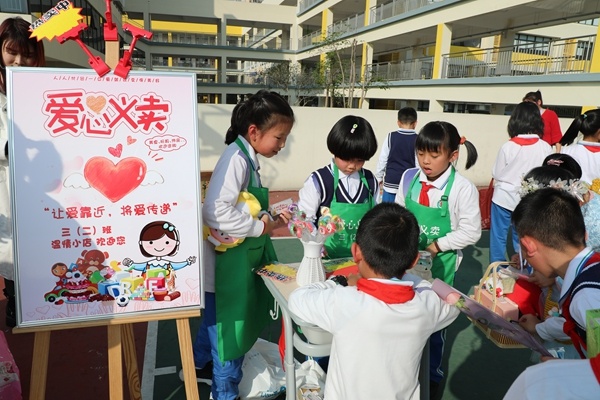 愛(ài)心就像冬日里的陽(yáng)光,三四年級(jí)的同學(xué)們開(kāi)展了愛(ài)心義賣活動(dòng),義賣攤位上擺滿了各式精美小巧的手工藝品、文具、食物、生活用品等,同學(xué)們向路過(guò)的“顧客們”推銷自己的愛(ài)心物品,可謂“八仙過(guò)海各顯神通”。行走在各式“商鋪”間,耳畔的叫賣聲,眼前的景象熱鬧非凡,在一買一賣之間傳遞愛(ài)心,讓大家感受校園的溫暖。