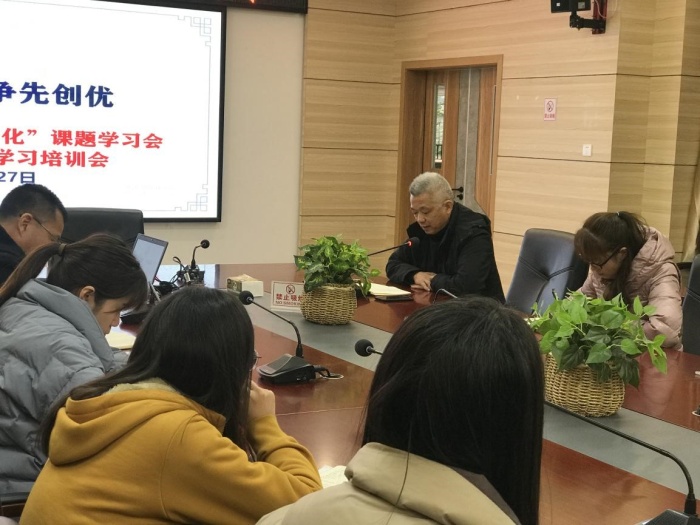 緊接著鄧主任以“現(xiàn)代君子文化”為內核的學校文化體系構建研究為教學藍本,重點為與會老師講解了該課題研究的目的及意義,鄧主任指出:目前關于學校文化建設的研究,多數(shù)在物質文化和制度文化上,但對于學校文化的精神文化和課程文化較系統(tǒng)、全方位進行研究的少,學校文化體系建設案例和成果較少,學校君子文化體系構建的更是甚少。所以本課題以“現(xiàn)代君子文化”為內核的學校文化體系構建研究是對學校文化建設的實踐與豐富。構建好學校君子文化體系,將現(xiàn)代君子內涵和要求在校園隨時隨地顯現(xiàn),在德、智、體、美、勞“五育”各個方面中滲透,促進學生主體性的發(fā)展,真正滿足學生與教師發(fā)展的需要,促進學校品牌特色形成,是本課題重要的實踐價值和意義。最后副校長董偉文鼓勵廣大班主任教師人人參與課題,注重問題導向,聚焦課堂,瞄準課堂教學質量,加快專業(yè)發(fā)展,帶出屬于自己特色的班集體。