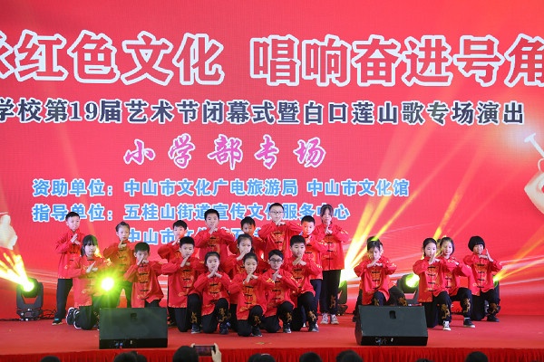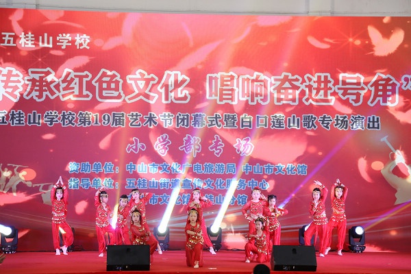 2021年12月31日一天,五桂山學(xué)校體育館內(nèi)歌舞飛揚(yáng),掌聲如潮,原來是五桂山學(xué)校在這里舉辦第19屆藝術(shù)節(jié)閉幕式暨白口蓮山歌專場演出。上午為小學(xué)兩個專場,下午為中學(xué)專場。