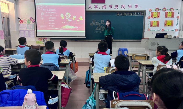 本次活動在各班班主任對學(xué)生衷心的新年祝福中開始,班主任寄語學(xué)生們在新的一年里身體健康,學(xué)習(xí)進步。簡單的語言,卻承載著老師最真心的祝福,同學(xué)們也紛紛用熱烈的掌聲表達對老師的感謝。緊接著,老師給學(xué)生講解了元旦相關(guān)的知識,如元旦的由來、世界各地的元旦習(xí)俗等等。