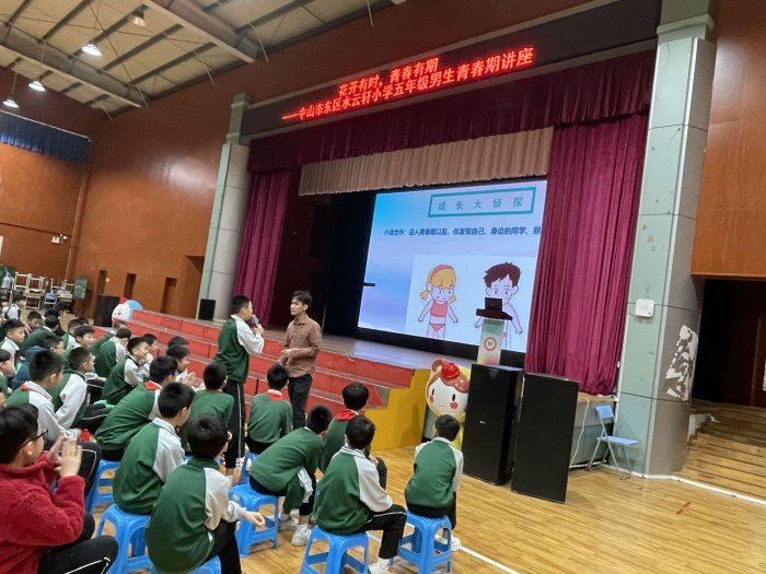 娉娉裊裊十三余,豆蔻梢頭二月初。青春期是青少年身心快速發(fā)展的重要階段,是學生成長的關(guān)鍵期。為引導學生正確對待青春期身體和心理的變化,減少青春期所引起的種種困惑對學生的學習、生活造成不良影響,幫助他們更健康、更快樂地度過青春期,2023年3月27日上午,中山市東區(qū)水云軒小學分別為五年級的男生和女生帶來一場有趣又有用的青春期健康知識講座。