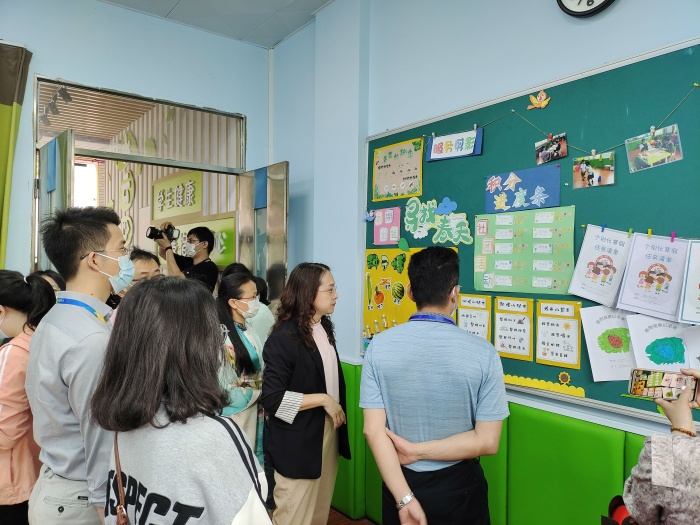 為了解學(xué)校融合教育的整體概況,以及資源教室的具體運(yùn)作,交流團(tuán)教師一行在林小舟校長和德育處行政陪同帶領(lǐng)下集體參觀校園,感受軒小潤物無聲,浸潤心田的水云文化。走訪心育陣地了解學(xué)校融合工作從點到面的全面鋪展。隨后,交流團(tuán)教師們一行在新多媒體室,查看軒小發(fā)展融合教育多年來不斷探索的資料,聽取學(xué)校融合教育的工作匯報。