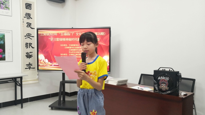 為進(jìn)一步加深社員們對雷鋒精神的理解,激勵社員們積極弘揚(yáng)踐行雷鋒精神并在新時代下賦予雷鋒精神更加豐富而深刻的內(nèi)涵,助力社員們在雷鋒精神的滋養(yǎng)陪伴下更加健康茁壯地成長,3月18日上午,三角鎮(zhèn)三角小學(xué)海鷗文學(xué)社的部分社員在中山市文化館三角鎮(zhèn)分館參加了由三角鎮(zhèn)宣傳辦、三角鎮(zhèn)宣傳文化中心(圖書館)等單位聯(lián)合主辦的三角鎮(zhèn)2023年“五福臨門”文化周活動(第20期)“學(xué)習(xí)雷鋒精神做時代新人”共讀活動。