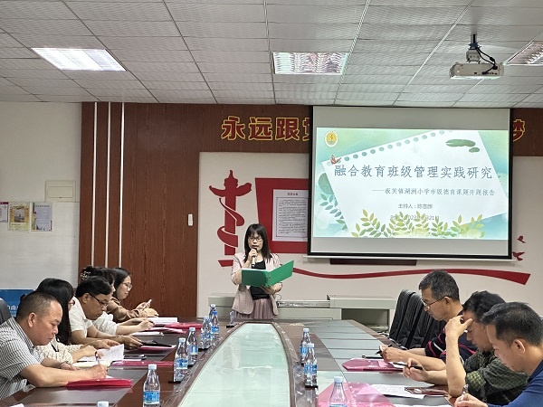 本次活動由湖洲小學(xué)德育副主任范丹丹老師主持?;顒邮紫扔烧n題主持人陳雪顏主任作開題報(bào)告。陳主任從課題的研究背景和理論依據(jù)、研究框架、研究思路、創(chuàng)新之處以及預(yù)計(jì)成果五個(gè)方面展開匯報(bào),擬探討出小學(xué)融合教育的一些新思路、新方法,形成一套行之有效、具有普遍性意義的能力提升模式,以此推動融合教育更好地發(fā)展。