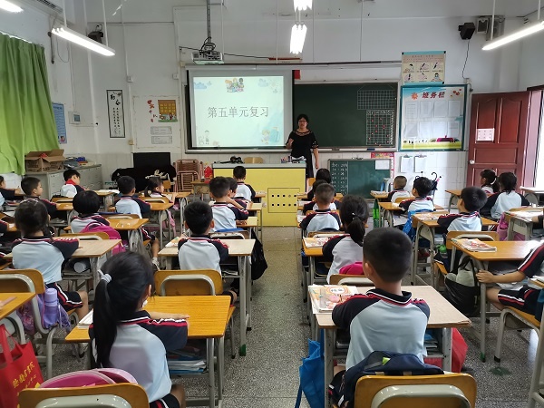 莊老師執(zhí)教的這節(jié)課的教學(xué)重點(diǎn)聚焦在一年級(jí)下冊(cè)第五單元的復(fù)習(xí)。上課伊始,莊老師帶著同學(xué)們縱覽第五單元的所有課文,再分門別類從第五單元的一類字、二類字、重點(diǎn)詞語(yǔ)、重點(diǎn)句子、多音字、同音字、形近字、日積月累中的歇后語(yǔ)帶著同學(xué)們一起復(fù)習(xí)鞏固,最后通過10分鐘的當(dāng)堂小測(cè)驗(yàn),趁熱打鐵,及時(shí)鞏固學(xué)生的第五單元復(fù)習(xí)成果。