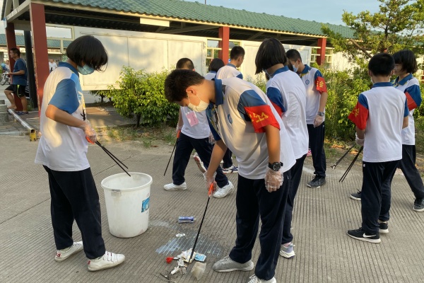 首先,德育處鄧妃弟主任在國旗下就“文明”活動發(fā)表講話。團委學生會負責人賀坤老師精心組織,先讓學校周邊衛(wèi)生更加整潔,讓學生會各個部門明確自己的任務。隨后,同學們井然有序地開展工作,大家紛紛拿起垃圾鉗和垃圾桶到學校校外周邊各個場所進行清潔。盡管天氣很熱,大家依然任勞任怨,擦干汗水繼續(xù)干活。在活動過程中,賀坤老師用手去撿垃圾,給同學們做好榜樣。同學們都不怕苦、不怕累,大家戴好手套用手去撿垃圾,大家互相幫助、團結協(xié)作,高效率勞動清潔。在全體學生會同學努力下,校園周邊環(huán)境得到了極大的改善。