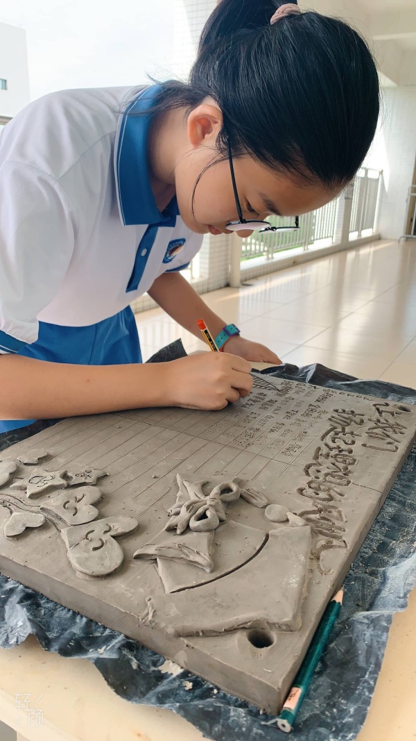 在開展陶板簽名儀式前,每個(gè)班級(jí)已根據(jù)自己的班級(jí)特色和理念設(shè)計(jì)了一塊感恩主題的陶板。有的班級(jí)以學(xué)校的美麗景色或花草樹木為版面來歌頌和感恩學(xué)校;有的以老師輔導(dǎo)學(xué)生、幫助學(xué)生等元素歌頌師生情,感恩師長(zhǎng);有的以帆船遨游大海設(shè)計(jì)元素來表達(dá)對(duì)未來的憧憬;也有以人物的元素裝飾板面表現(xiàn)七彩童年……每一塊主題鮮明,裝飾豐富,各有特色。簽名活動(dòng)中,孩子們?cè)诿佬g(shù)科組全體老師的指引下有秩序地排隊(duì),小心翼翼地在陶板上刻上自己的名字,為母校留下永恒的印跡,這對(duì)于師生來說是一次非常有意義的活動(dòng),讓畢業(yè)充滿了儀式感。
