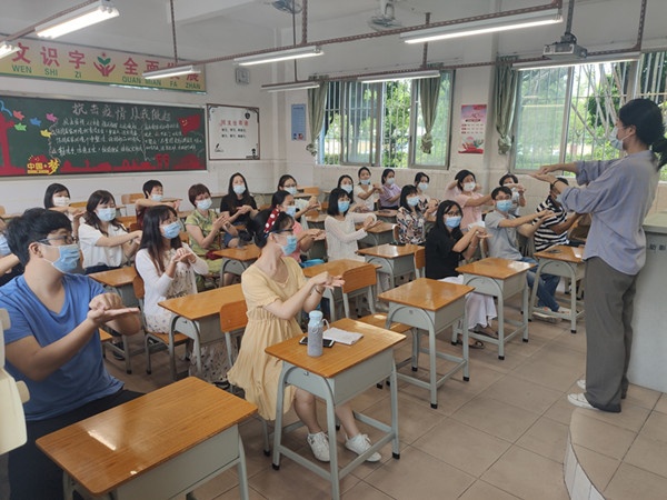 本次應(yīng)急處置演練由林德歡校長(zhǎng)總指揮,符小花主任執(zhí)行指揮,先后進(jìn)行了“學(xué)生返校入門測(cè)溫”“上課發(fā)現(xiàn)異常學(xué)生應(yīng)急處置”和“隔離區(qū)咨詢與處置”三個(gè)場(chǎng)景的演練。首先是校園大門口晨檢和午檢,教師扮演的學(xué)生入校門后,分四大組排好隊(duì)伍,保持前后左右一米距離,由值日老師和值日行政負(fù)責(zé)測(cè)量每位學(xué)生的體溫,體溫異常人員將帶至一旁觀察點(diǎn)進(jìn)行二次復(fù)測(cè)。接著模擬場(chǎng)景二:學(xué)生回到班級(jí)后,班主任再一次對(duì)全班學(xué)生進(jìn)行體溫檢測(cè),掌握學(xué)生的身體狀況;最后,演練小組又分別模擬了課室課間對(duì)較劇烈咳嗽、體溫異常學(xué)生的應(yīng)急處置場(chǎng)景,各組人員積極配合、密切合作,整個(gè)演練過程科學(xué)、規(guī)范、有序,檢驗(yàn)了學(xué)校應(yīng)急預(yù)案的科學(xué)性和可操作性。