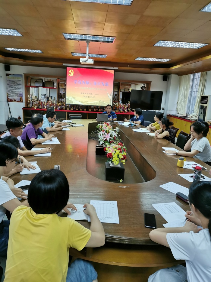 在會議中,潘校長提出教師應(yīng)自覺增強立德樹人、教育育人的榮譽感和責(zé)任感,學(xué)為人師,行為師范,努力當(dāng)好學(xué)生健康成長的指導(dǎo)者和引路人。其中潘校特別強調(diào)并傳達了古鎮(zhèn)鎮(zhèn)對教育工作指引,加強黨對教育工作的全面領(lǐng)導(dǎo),強化新時代師德師風(fēng)建設(shè),落實立德樹人根本任務(wù),全面深化教育教學(xué)改革,促進教育公平,提高教育質(zhì)量,以擔(dān)當(dāng)作為踐行初心使命,努力開創(chuàng)我鎮(zhèn)教育事業(yè)高質(zhì)量發(fā)展新局面。接著,潘校長針對師德師風(fēng)建設(shè)活動進行了具體的布署,海洲第一小學(xué)教師應(yīng)努力成為一支“有理想信念、有道德情操、有扎實學(xué)識、有仁愛之心”的隊伍。通過師德建設(shè)教育活動,學(xué)校選出了一大批愛崗敬業(yè)的先進個人、模范典型。
