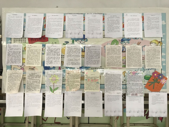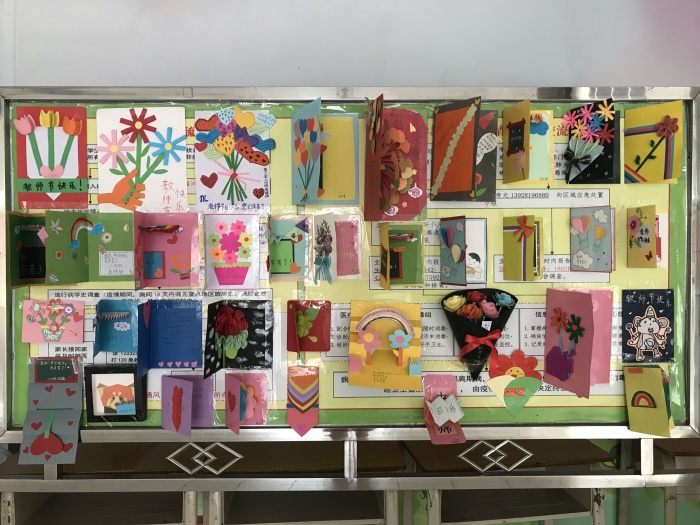 搜集好每個(gè)班最優(yōu)秀的五份賀卡跟五篇文章,由年級(jí)組長(zhǎng)胡翠連、何夢(mèng)雅、李秀芳老師張貼在學(xué)校的展覽板上供大家觀看、閱讀。