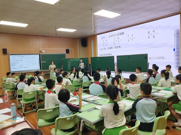 本次活動分為兩個環(huán)節(jié),第一環(huán)節(jié)由申君老師執(zhí)教六年級上冊《倒數的認識》的課例。課堂伊始,申老師以拼字游戲導入學習,以導學案為紐扣,引導學生分小組進行合作學習,整節(jié)課教學環(huán)節(jié)緊扣,目標明確,學生積極性高,小組合作學習氛圍濃厚。