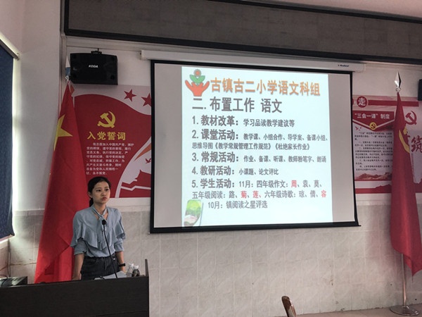 打印 |根據(jù)古鎮(zhèn)鎮(zhèn)教育指導中心以及小學語文中心教研組活動安排,9月27日上午,古二小學語文科組長黃藝容老師參加了鎮(zhèn)舉辦的教研工作計劃培訓會議,下午利用語文科組的常規(guī)會議時間,舉辦了古二小學語文科組第五周會議活動,活動由黃老師主持,古二小學副校長袁潔云校長和教導主任朱劍鋒主任,以及全體語文教師參加了本次會議。