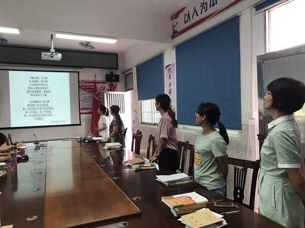 本次會議分為三個環(huán)節(jié),第一環(huán)節(jié)是語文科組的常規(guī)活動時間,本次由四、五、六年級語文教師齊讀朗誦現(xiàn)代優(yōu)美詩歌《墻頭草》、《沙揚娜拉》。在此之后,科組檢查并登記了,各語文教師的聽課情況。第二環(huán)節(jié),黃老師認真研讀了《2020-2021學年度上學期古鎮(zhèn)鎮(zhèn)小學語文中心教研組工作計劃》、《2020-2021學年度上學期古鎮(zhèn)鎮(zhèn)中小學中華優(yōu)秀傳統(tǒng)文化教育工作主要內容》,傳達了鎮(zhèn)教辦的工作精神。并且根據(jù)實際情況,將兩項任務,分別羅列了:課堂改革、課堂活動、學生活動等五條要點,帶領全體語文教師領悟上級文件的工作意見和重要內容。黃老師也對一些接下來開展的學生競賽活動做了簡單清晰地部署。第三環(huán)節(jié),在朱主任的引領下,全體教師認真閱讀了《古鎮(zhèn)鎮(zhèn)小學教師教學常規(guī)管理工作規(guī)范》,并對“認真?zhèn)湔n、認真上課、認真輔導”等三項內容,做了細致的解析和要求。緊接著朱主任的發(fā)言,袁校長做了總結。她指出,語文科組是擁有人數(shù)最多、力量最大的一個科組,所以要集中力量共同進步。按照鎮(zhèn)教辦的要求,做到心中有計劃,同時圍繞學校的實際情況,我們也要巧妙開展“同課同構活動”的學習方法探究活動、“優(yōu)秀傳統(tǒng)文化活動與藝術節(jié)”相融合的計劃、加大語文特色的常規(guī)活動、利用教學反思和聽課評課促進課堂改革和教師進步等等建議。