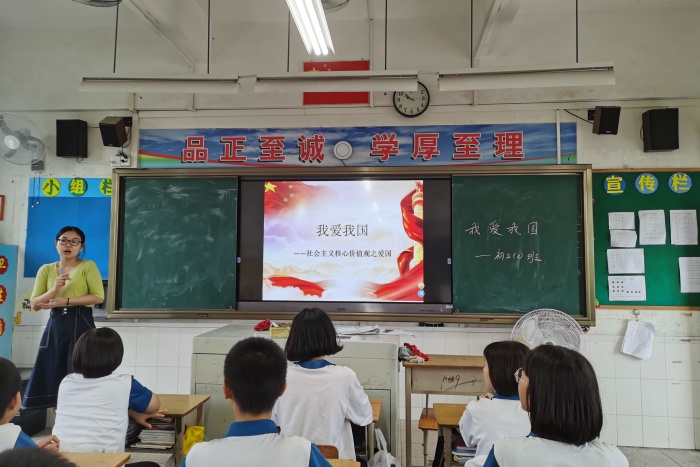 2020年9月28日,中山市曹步中學(xué)初三(2)班開展了一次以“我愛我國”為主題的班會(huì)。本次班會(huì)旨在加強(qiáng)學(xué)生對(duì)祖國的熱愛,讓學(xué)生更有國家榮譽(yù)感。