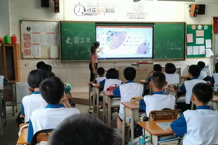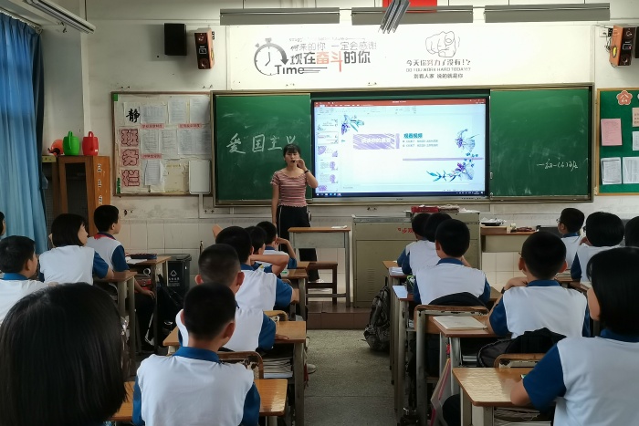 班主任毛茜老師首先提問學(xué)生,祖國在大家心里是什么含義?同學(xué)們紛紛發(fā)表了自己的看法。毛老師趁大家情緒漸佳,馬上展開了第一個(gè)流程,通過引入一些歷史上較為有名的愛國人士的故事,向同學(xué)們展現(xiàn)了什么是愛國。而后,毛老師詢問:為什么愛國呢?同學(xué)們通過實(shí)例深刻感受到“有國才有家,有家才有我”這雖然簡單但也道出真理的話語。中國現(xiàn)在生活環(huán)境能這么好,更應(yīng)該值得大家去珍惜,去愛護(hù)。