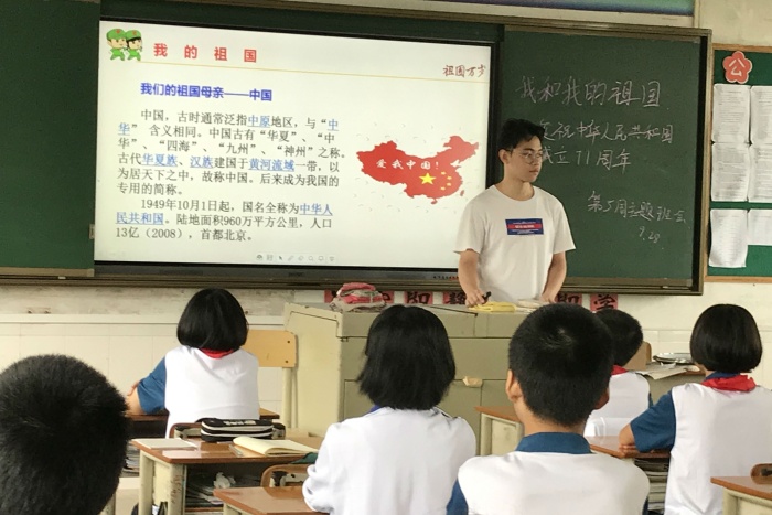 接著,同學(xué)們進(jìn)行了激烈的愛國(guó)知識(shí)競(jìng)答。大家都積極回答。來到 “熱愛祖國(guó)”這個(gè)環(huán)節(jié),主要講述中學(xué)生能做什么。盤老師帶領(lǐng)了同學(xué)齊唱了《我和我的祖國(guó)》,讓同學(xué)們深深感受到了中國(guó)71年來的變化和發(fā)展。