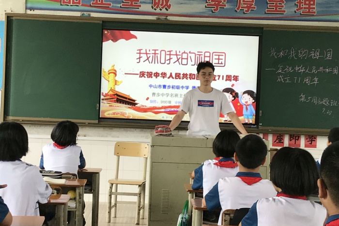 為了讓學(xué)生繼承和發(fā)揚(yáng)中華民族自強(qiáng)不息的民族精神,同時(shí)在國(guó)慶假期能加強(qiáng)自身安全意識(shí),曹步初級(jí)中學(xué)初一(1)班于9月28日上午第二節(jié)班會(huì)課開展了“慶祝中華人民共和國(guó)成立71周年與安全教育”主題班會(huì)活動(dòng)。初一(1)班全體同學(xué)和班主任盤林瑋老師都參與了本次班會(huì)活動(dòng)。
